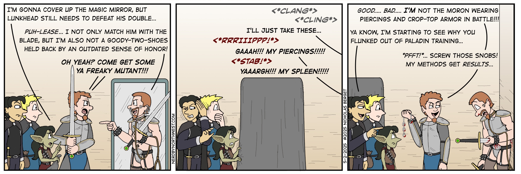 Nerd By Northwest #356 – “Dirty Pool” May02 by Nick on May 2, 2025 Chapter: Nerd By Northwest └ Tags: D&D, dungeons and dragons, gaming, mirror of opposition, paladin, piercings